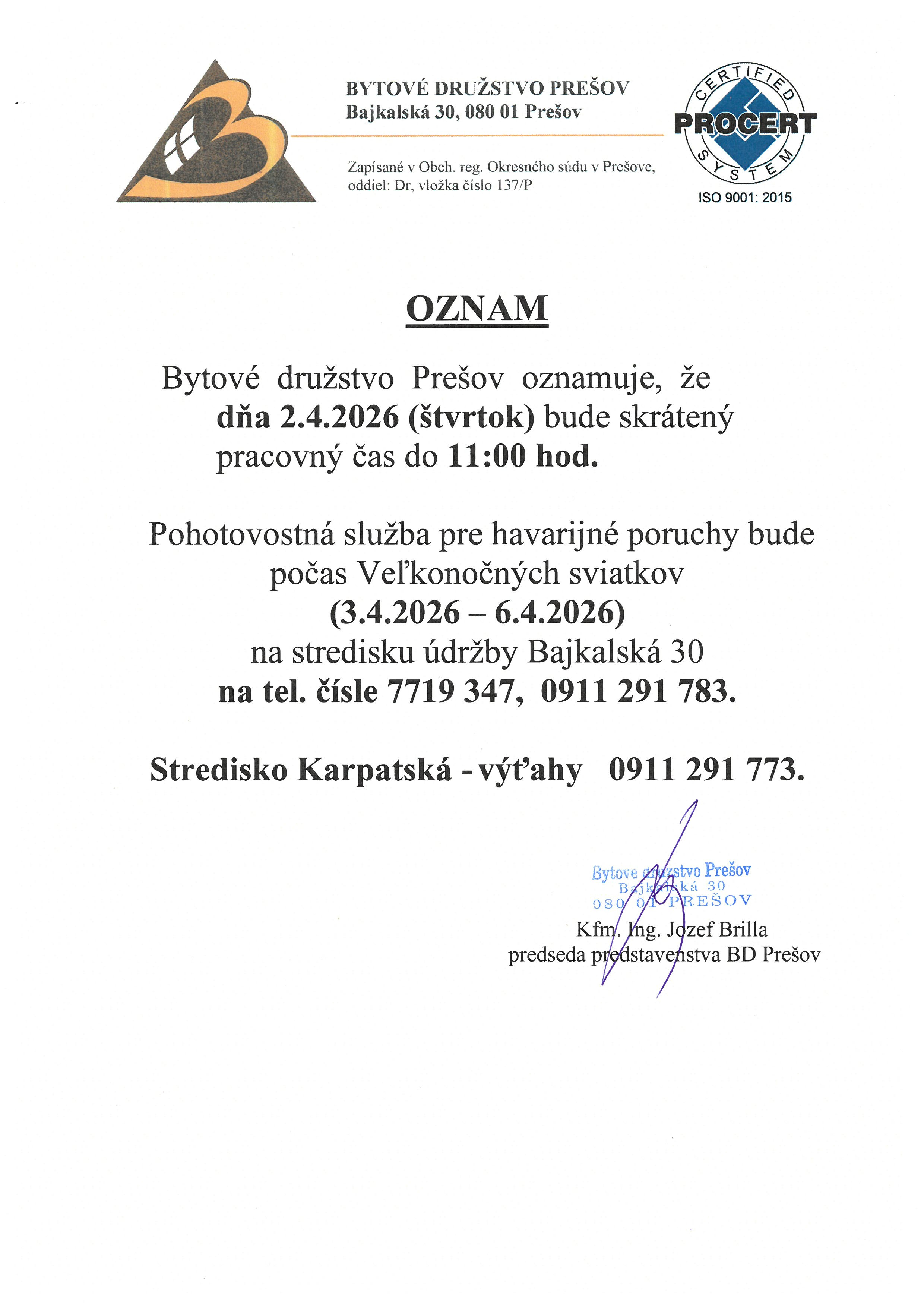 | Email: | sekrpr@bdpresov.sk |
