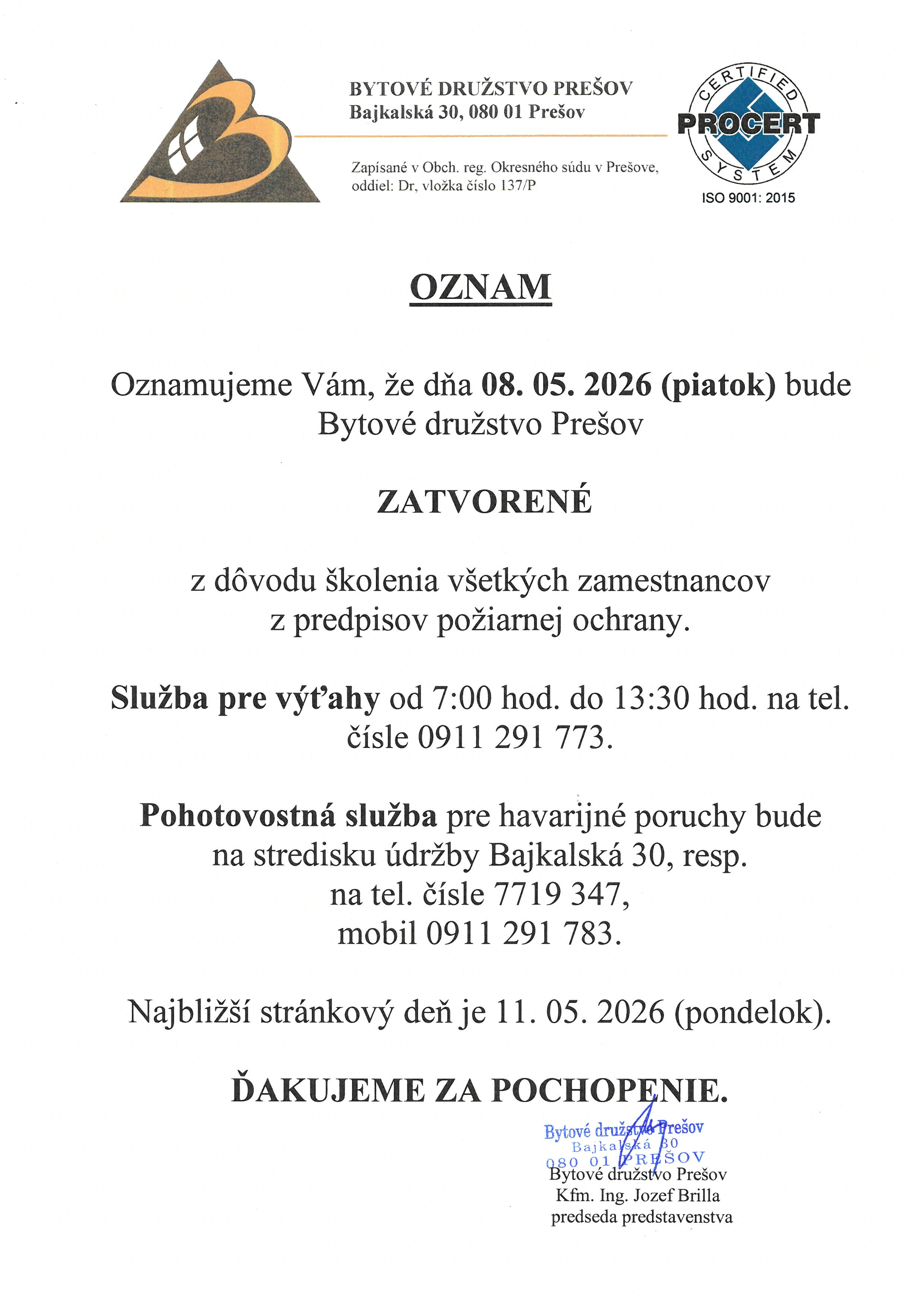 Za porozumenie a trpezlivosť Vám vopred ďakujeme.